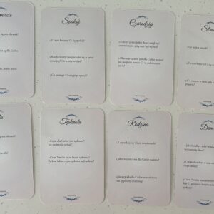 Wykorzystaj je według własnych potrzeb – są stworzone zarówno dla specjalistów, pracujących w celach terapeutycznych, jak i dla osób, które chcą pogłębić swoją refleksję w domowym zaciszu, ciesząc się grą towarzyską oraz inspirując do rozmowy. Pamiętaj – to od Ciebie zależy, jakich odpowiedzi szukasz i jaką drogę wybierzesz.